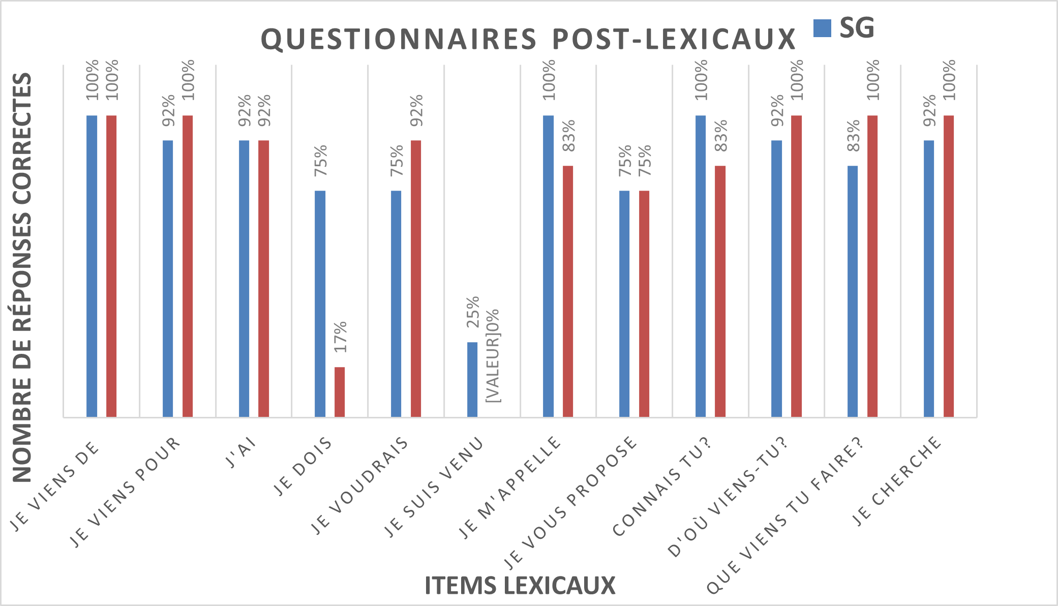 Graphique 1 – Questionnaires post-lexicaux du groupe contrôle. Graphique réalisé par nos soins.